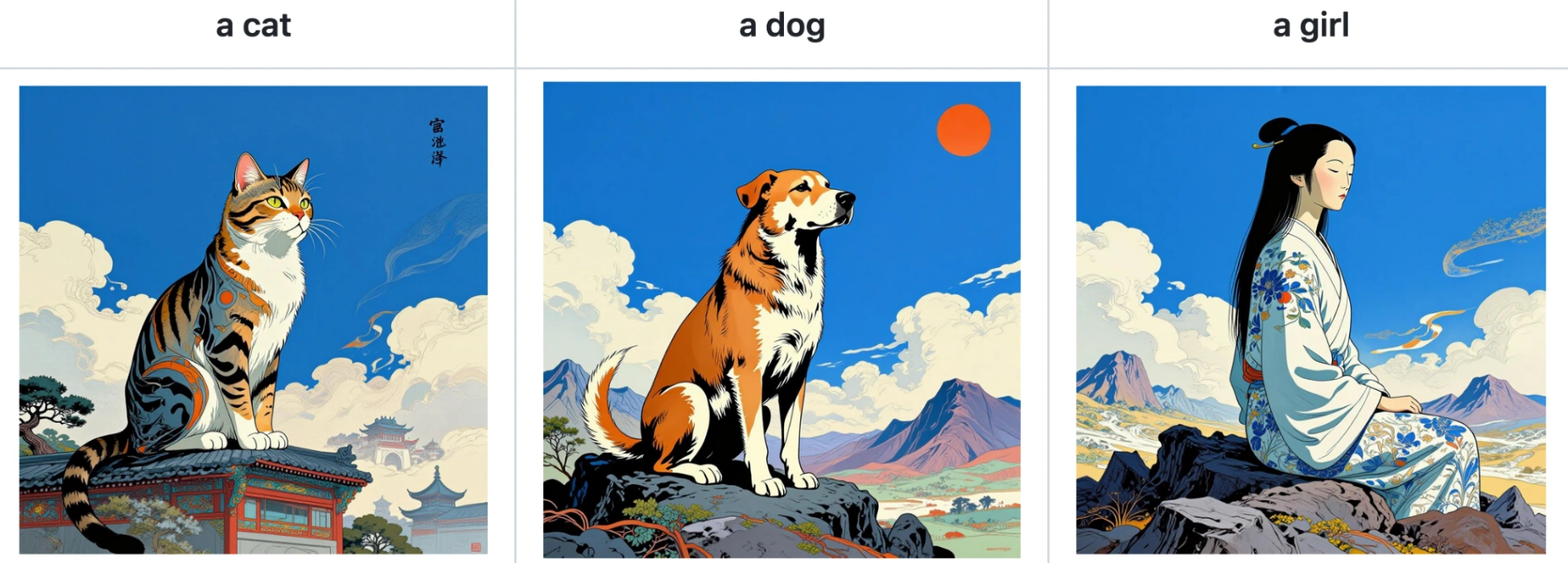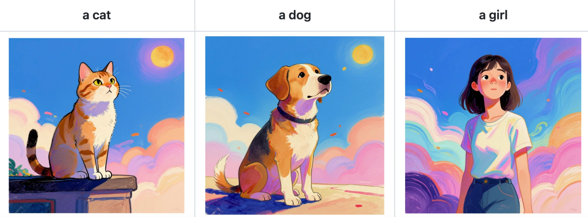 The power of Z-Image-i2L lies in its ability to extract a cohesive style from just a few input images (or even a single image) and apply it to new prompts. Below are examples of how the model interprets different artistic directions.